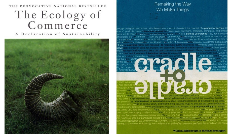 1990 წელს სამმა უმნიშვნელოვანესმა, აზროვნების ფუძემდებელმა ლიდერმა ჩვენი გონება წარმართა ახალი გზით, თუ როგორ შეიძლება, რომ დიზაინისა და არქიტექტურის პროფესიები უკეთ გამოივიყენოთ ბუნებასთან თანამშრომლობით და უფრო მეტი სარგებელი მივიღოთ. 1993 წელს Paul Hawken-მა დაწერა The Ecology of Commerce: A Declaration of Sustainability (კომერციის ეკოლოგია: მდგრადობის დეკლარაცია). ესაა თამაშის წესების შემცვლელი წიგნი, რომელმაც შთააგონა ცნობილი Ray Anderson – Interface-ის დამფუძნებელი, რომ მთლიანად გარდაექმნა მისი ბიზნესი. 1997 წელს Jeanine Benyus გამოჩნდა წიგნით Biomimicry: Innovation Inspired By Nature (ბიომიმიკრია: ბუნებისგან შთაგონებული ინოვაცია), რომელიც დიზაინერებს მოუწოდებდა, რომ მიებაძათ ბუნებრივი ფორმებისა და პროცესებისთვის. მან მთელ თაობაზე მოახდინა გავლენა. შემდეგ 2002 წელს William McDonough-სა და ქიმიკოს Michael Braungart-ის თანაავტორობით გამოვიდა წიგნი Cradle to Cradle: Remaking the Way We Make Things, მანიფესტი, რომელიც ახალ ინდუსტრიულ რევოლუციას იხმობდა. მისი მთავარი პრინციპი „ნაგავი უდრის საკვებს“ წარმოშობს ინდუსტრიულ ციკლს, რომელიც პროდუქტებს ხედავს, როგორც აგურებს, რომლისგანაც შემდეგ კედელი იქმნება, შენდება. პროდუქტები, ბიოლოგიური და ტექნიკური საკვები ნივთიერებები იშლება ბუნებრივად და შემდეგ ისევ საკვებ ციკლში ერთვება.