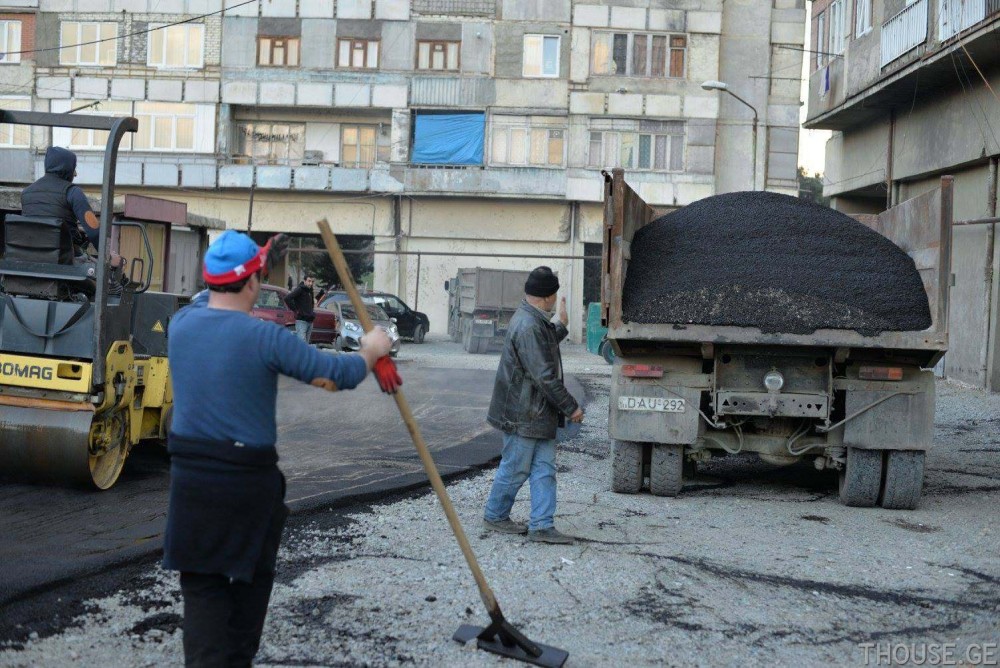 თემქის შიდაკვარტლურ გზებზე ასფალტის საფარს აგებენ
