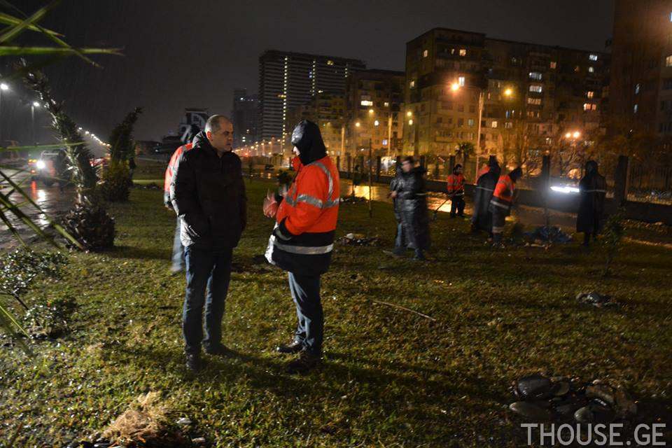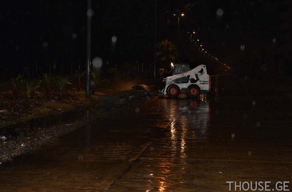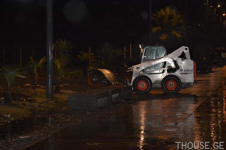 "დილის 6 საათიდან ბათუმის სანაპირო ზოლის სარეაბილიტაციო სამუშაოები უწყვეტ რეჟიმში მიმდინარეობს. ამ დროისთვის უკვე დასრულებულია სანაპიროს ძირითადი ნაწილის აღდგენა. საბედნიეროდ ზიანი არ არის დიდი, ძლიერმა შტორმა ქვიშა და ნატანი ამოიტანა პრომინადზე,რომლის დიდი ნაწილი როგორც უკვე აღვნიშნე გაწმენდილია. ამ ეტაპზე შტორმის სიმძლავრე შემცირებულია,რაც აადვილებს გაწმენდითი სამუშაოების დასკვნითი ეტაპის შესრულებას.