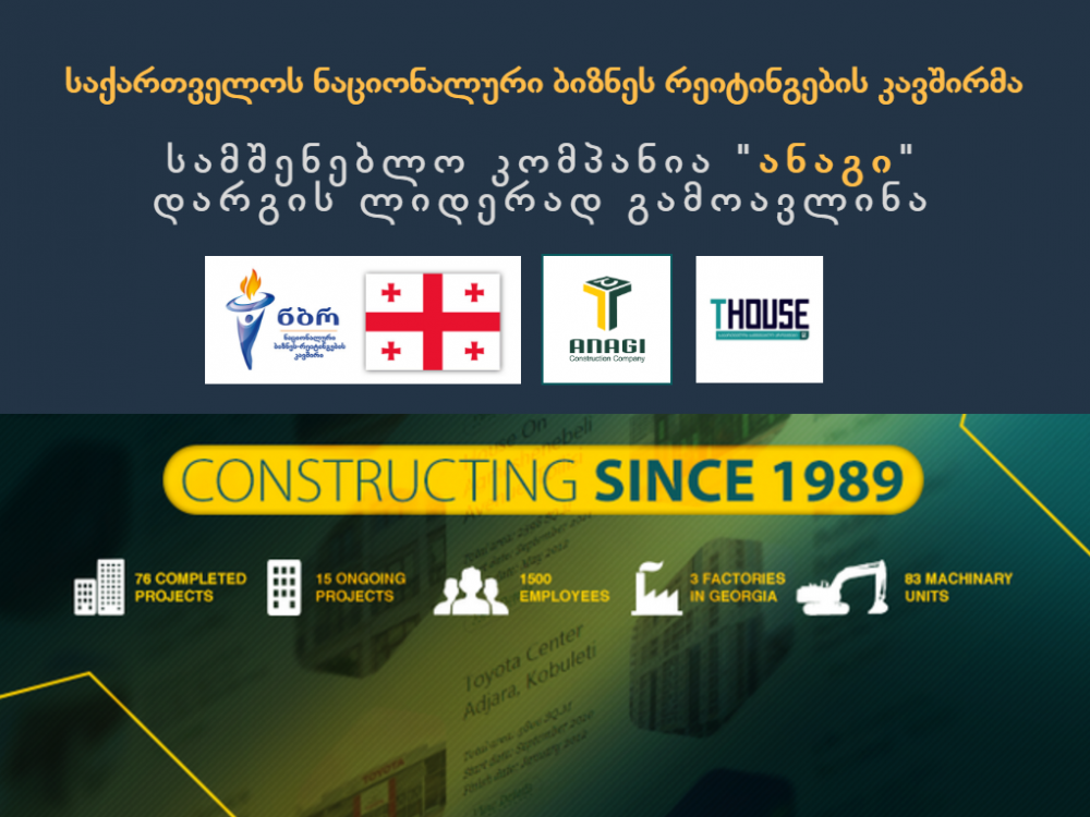 საქართველოს ნაციონალური ბიზნეს რეიტინგების კავშირმა სამშენებლო კომპანია "ანაგი" დარგის ლიდერად გამოავლინა