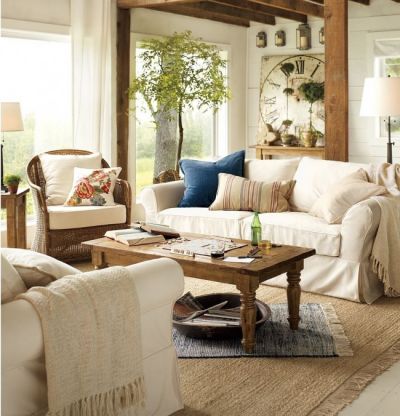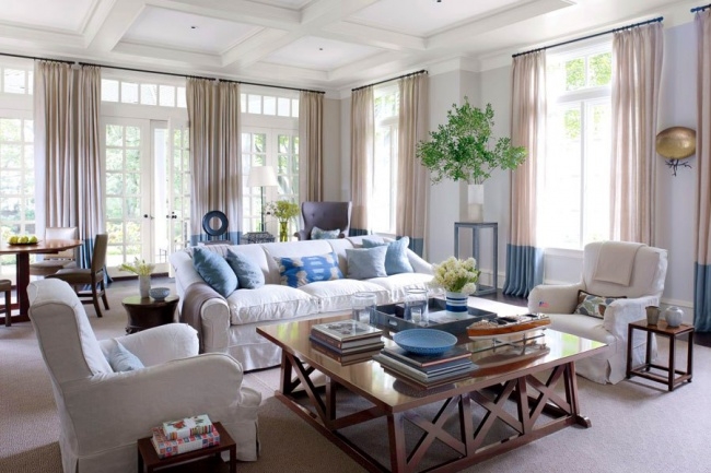 ყურადღებით შეარჩიეთ კარადა, მისი ფაქტურა და ფერი ოთახის დიზაინზე არსებითად იმოქმედებს, კარგი იქნება, თუ დივანზე სხვადასხვა ფერის ბალიშებს დააწყობთ. ყურადღება მიაქციეთ ფანჯრების დიზაინს, ჩვენ ნეიტრალური ფერის ფარდების შეძენას გირჩევთ, რადგან ამ შემთხვევაში, ნაკლები ალბათობაა, ისინი მალე მოგბეზრდეთ. ზოგადად, ნაჭერი ინტერიერს სიმყუდროვეს სძენს: ეს შეიძლება იყოს სავარძელზე უხეშად გადაფენილი შალი, პლედი ან მაგიდაზე დაფენილი რბილი სუფრა.