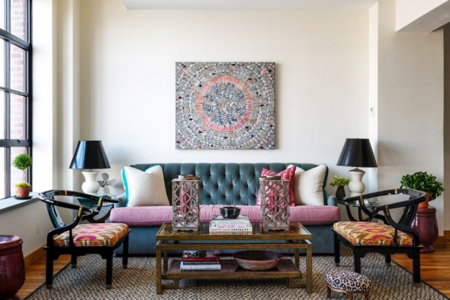 იპოვეთ ოთახში 1 სიმეტრიული წერტილი და ინტერიერი მის გარშემო ააგეთ. ამ წერტილად შეიძლება მოვიაზროთ ბუხარი, კედელზე ჩამოკიდებული ნახატი, ფანჯარა... გამოიყენეთ ვერტიკალური ხაზები - ეს ილეთი ოთახს ვიზუალურად ამაღლებს. დაამატეთ ერთი ასიმეტრიული ნიუანსი.