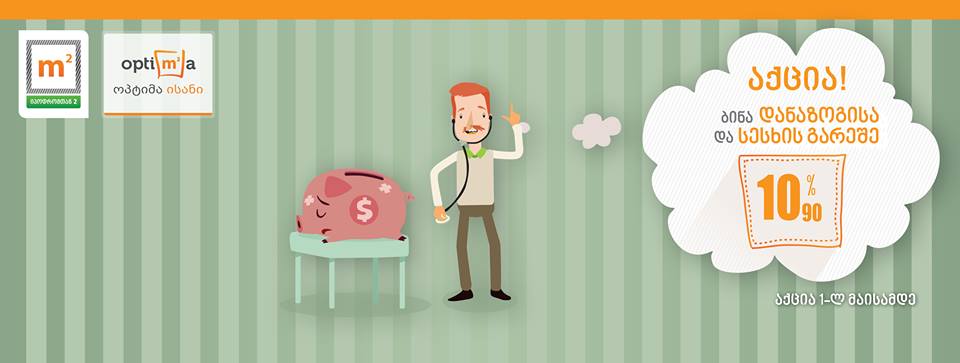 m² უძრავი ქონება მომხმარებლებს სენსაციურ გადახდის პირობებს სთავაზობს. 1 მარტიდან 1 მაისამდე შესაძლებელი იქნება დანაზოგისა და სესხის აღების გარეშე შეიძინონ ბინა 2 მიმდინარე პროექტში: m² იპოდრომთან 2 და ოპტიმა ისანში.
