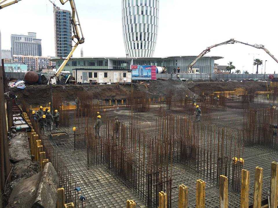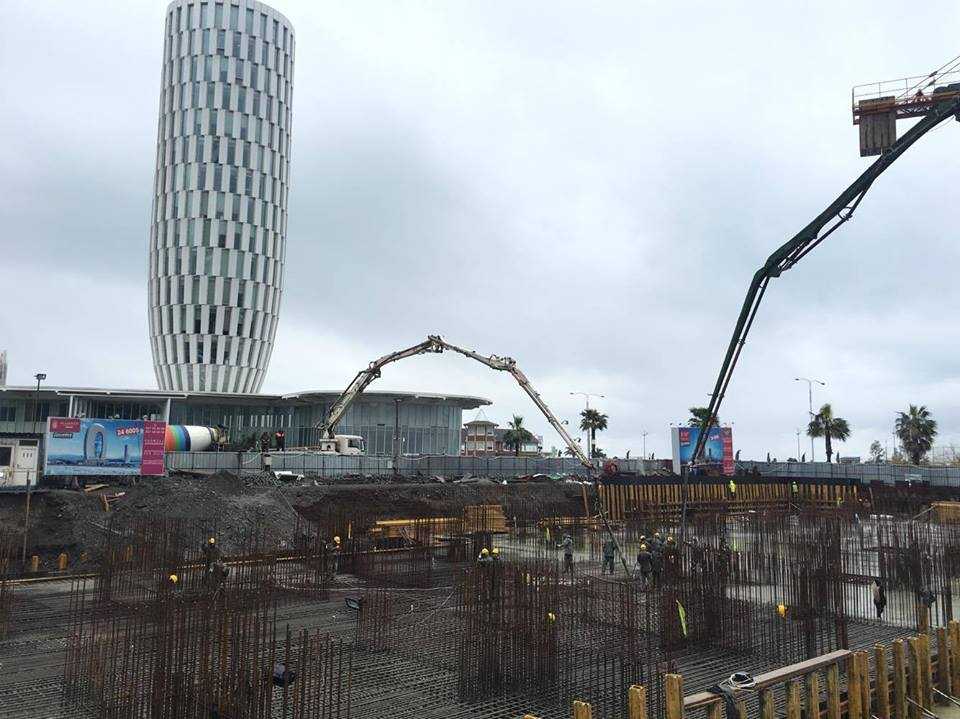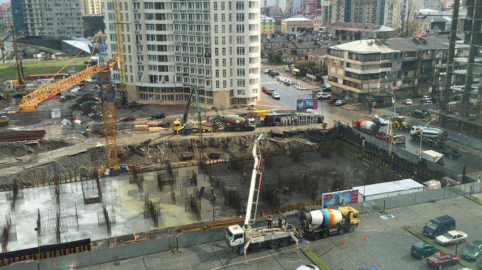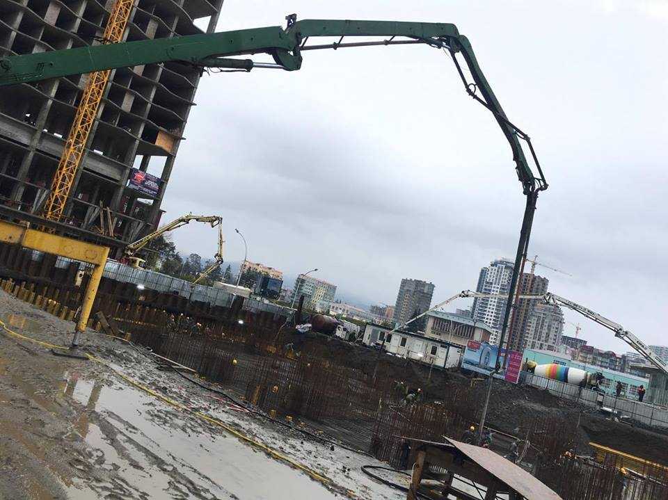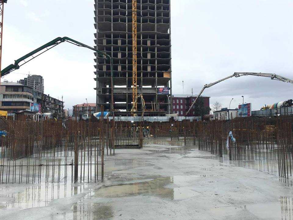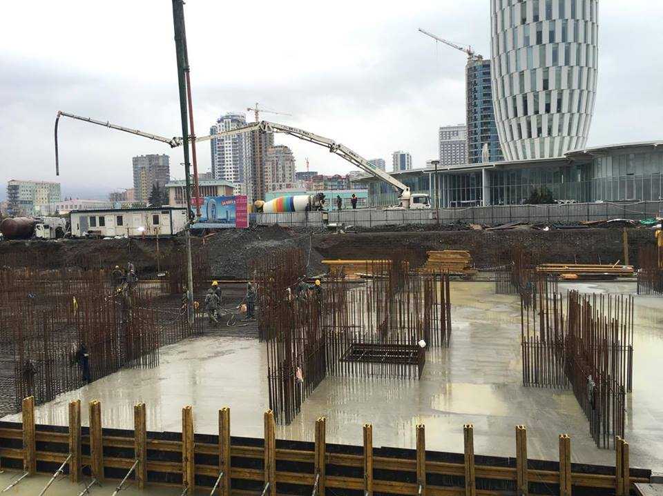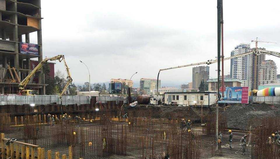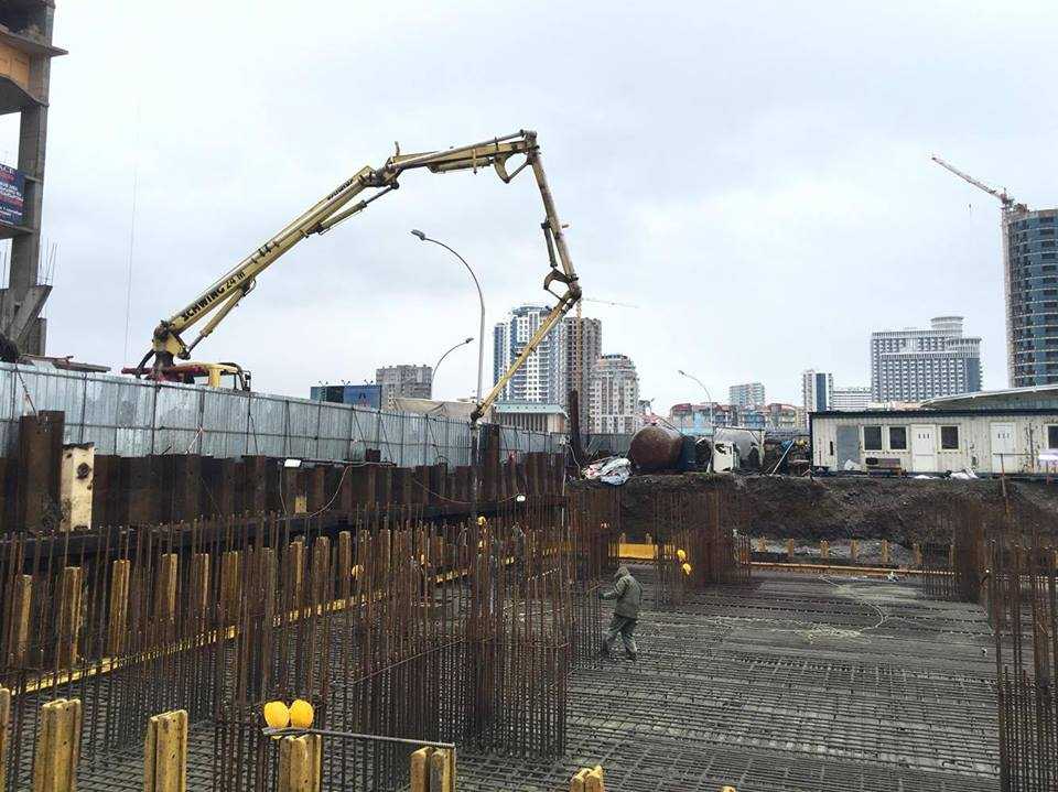 მიმდინარეობს მრავალფუნქციური კომპლექსის „ალიანს პალასის“ საძირკვლის ფილის უწყვეტი ბეტონირება.