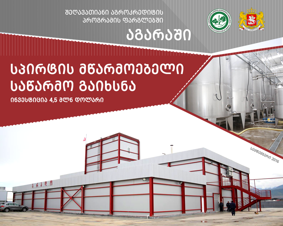 აგარაში სპირტის მწარმოებელი საწარმო გაიხსნა