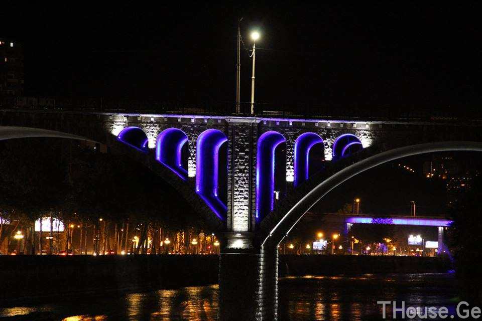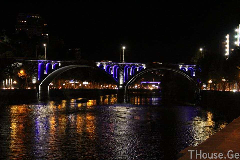 თბილისში თამარ მეფის ხიდი მხატვრულად განათდა