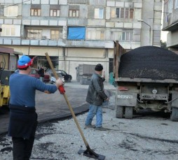თემქის შიდაკვარტლურ გზებზე ასფალტის საფარს აგებენ
