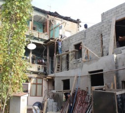 ქურხულის ქუჩის N 6-ში სამსართულიანი სახლის გამაგრების სამუშაოები მიმდინარეობს